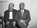 James E. Wood of Edington, N.C., left, president of the National Peanut Council, an early arrival for the annual meeting of the Southwestern Association at Hotel Texas, urged increased research and advertising to maintain the present high demand for peanut products. In this picture, he is sitting next to J. D. Sargent of Tolar, Texas and they are smiling and posing for a picture. Published in Fort Worth Star-Telegram, morning edition, June 28, 1946.