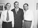 The national peanut crop is about 3,500,000 acres only slightly under the acreage in the peak war year of 1945. The national council is working with all branches of the peanut industry through research to improve peanuts and peanut products. An informal dinner and floor show was held at Hotel Texas. Among the other early arrivals for the meeting are, left to right: T. C. Wylie, Ranger, M. E. Shell, Gorman, and Ralph McMillen, Bristow, Oklahoma. In this picture, they stand next to each other and pose with smiles. Published in Fort Worth Star-Telegram, morning edition, June 28, 1946.