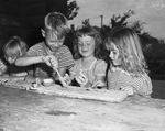 Recreation Department playground. Finding something to do when school is out is no problem at all, left to right, Doss Miller, 8, who demonstrates clay modeling to Gloria Dell Bowles, 7, and Nellie Bowles, 6 at Meadowbrook Park, one of the Recreation Departments' 26 summer playground programs, held six days a week. Published in Fort Worth Star-Telegram, evening edition, June 28, 1946.