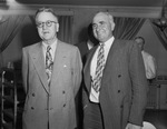 Leaders of the livestock industry were in Fort Worth for a meeting of directors of the Texas & Southwestern Cattle Raisers Association. Left to right, Dolph Briscoe, Uvalde, Texas and Ed Ardoin, El Paso, Texas, who also ranches in Mexico, and Ed Ardoin, El Paso, Manager of the Hearst Ranch in Mexico. They are standing, both wearing a suit and tie, and posing for a picture. Published in Fort Worth Star-Telegram, morning edition, June 29, 1946.