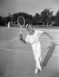 Tennis players; Tennis rackets; Tennis; Students; Hamilton, Don; Visors (Hats); T-shirts