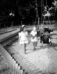 Midsummer Day's Dream Come True -- Albert DeLoss Bronson, 3, and his friend Anna Jane Homer, 5, trying to decide on which car to ride on. Published in Fort Worth Star-Telegram July 10, 1946.