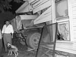 Heavy dump truck that crashed into bedroom of a frame residence. Mrs. G. W. Jackson was injured.