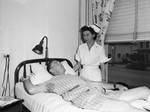 Tommy Bates, motorcycle patrolman injured 4 years ago, shown with nurse, Clara B. Crouch.