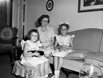 Mrs. Ben Terrell and daughters Sarah, the older, and Betty are pictured here. They are sitting in their living room, 3917 Hamilton. Mrs. Terrell and Sarah are sitting in a sofa and Betty is sitting in an ottoman. They are admiring the family kittens. Sarah and Betty are holding the kittens in laps. Published in the Fort Worth Star-Telegram evening edition, August 5, 1946.