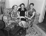 Three Fort Worth teachers Mrs. Glennie Zent, left; Mrs. Maurine Hammack and Miss Clarice Jackson are pictured here. They are shown seated in a living room sofa, facing front and smiling for the camera. All are wearing dresses. There are three suitcases in the room. The three teachers are now on leave of absence and compare contracts for their new teaching positions in Austria. They will help staff the new Dependents Schools Services there. Published in the Fort Worth Star-Telegram evening edition, July 29, 1946.