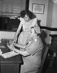 Marie Louise Connelly learning work from Red Cross volunteer staff member Mrs. George Gray.
