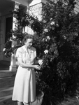 Mrs. Will Ed Kimble examining Syriacus or althea shrub