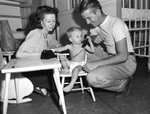 Mike Latham, 20 months, with his parents, Mr. and Mrs. James Lathem, after he fell from a window.