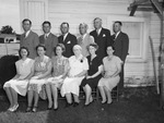 Morton family reunion. Front row, left to right, Mrs. Gene Bolt, Brownwood; Mrs. Weyman A. Fincher, Fort Worth, Texas; Mrs. Mona Besozzi, San Francisco, California; Mrs. Nora Morton; Mrs. Velma Morris, Lubbock, Texas, and Mrs. Eunice Adcock, Comanche, Texas. Back row, left to right, Joseph E. Morton, Fort Worth, Texas; Harry J. Morton, Fort Worth, Texas; Tom L. Morton, Abilene, Texas; A. J. Morton, Altadena, California; Fred E. Morton, Fort Worth, Texas, and Clyde E. Morton, Fort Worth, Texas.