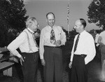 At a Fort Worth Bar Association barbecue event are (left to right) William Pannill, Associate Justice Earl P. Hall, and Chief Justice Atwood McDonald.
