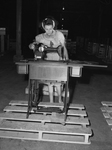 Mrs. Edward F. Bunn, typist, testing machine at the War Assets Administration (W. A. A.) sale at the Fort Worth Quarter Master's Depot.