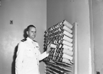 Lieutenant R. W. Coltharp of Turnersville, Navy Medical Corps consultant, interpreter of brain study machine at the United States Public Health Service Hospital (U. S. P. H. S. H.).