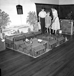 Miss Sadie Dawson showing miniature military post to Bobby King (left) and Jerry Parker at the Fort Worth,Texas Children's Museum.