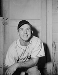Johnny Corriden is one of the newest additions to the Fort Worth Cats outfield. He came to Fort Worth, Texas, from Mobile City, Texas, and is currently playing left field. Corriden stands five-foot-six and is known for his speed. He is kneeling in front of a door, dressed in the Cats' home uniform.
