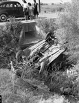 1939 sedan that landed up side down in a 12 foot ditch driven by Cornelius E. (Neal) Duer, 26.