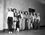 North Texas Fair, Arlington, Texas beauty queen contestants Mary Reid, Betty Nunnelee, Betty Hipp, June White, Hulda Cannon, Myrtle Ann Waters, Pat Kuykendall, Frances Ditto, Mary Ruth Rusk and Juanita Williams.