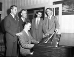 Rosen Heights Baptist Church Ambassadors Class of Veterans. At the piano is Witt Roberts Junior. Standing, left to right: Bill Null, Reverend Jesse Garrett, pastor; James Martin, and R. W. Sanderson.