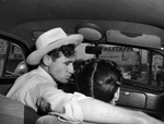 The Fort Worth Star-Telegram is running a series on driving safety. Playing the role of a careless driver "Joe Blow," the traffic hazard is Marcus Curd. He is driving distracted, with an arm around his girlfriend Milly. Meanwhile, the car is careening down the middle of the highway. Published in the Fort Worth Star-Telegram morning edition, September 3, 1946.