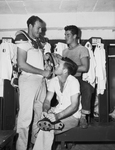 North Side High School football players George Brown (left), Charley Sheets (seated) and behind him is Twain Morrow.
