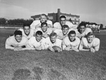 Fort Worth Techncial High School football team probable starters are (left to right, bottom row) Don Sheppard, Gene Owens, Winston Newman, Laurence Touchon, Alfred Fowler, J. E. Bridges, J. D. Madewell, (middle row) Leroy Purselley (left) and George Ross, (top row) Charley Parrot (left) and Don Dunaway.