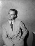 T. J. Youngblood Junior is a traffic representative for Delta Airlines in Fort Worth, Texas. He is a graduate of Polytechnic High School and a former student at Texas Wesleyan College (T. W. C.). He served three years as an aerial gunnery instructor for the Army Air Corps. At the time of discharge in February, Mr. Youngblood held the rank of staff sergeant. He is married to the former Miss Katharyn Lilly. They have a nine-month old so, Tommy III. Mr. Youngblood is dressed in a double breasted suit.