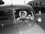 The Fort Worth Star-Telegram is running a series on driving safety. Playing the role of a careless driver "Joe Blow," the traffic hazard, is Marcus Curd. He is shown yawning as he speeds along the highway. Rather than drive sleepy, Joe should pull off to the side of the road. Mr. Curd is dressed in a hat, button-up shirt, and a necktie. The Ajax Glass Company is pictured in the background. Published in the Fort Worth Star-Telegram morning edition, September 4, 1946.