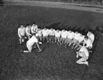 Polytechnic High School football coaches and players Assistant Coach Wilson Groseclose and Coach Johnny Kitchen (at right) and players (left to right) W. A. (Dub) Graves, Ed Peacock, Joe Holt, Bryant Bennett, Lewis Connell, Bob Ball, Bill Burkhart, Tommy Taylor, John Bradford, Luther Scarborough Junior, Jerry Nabors, Bill Elliot and W. H. (Dub) Kelley.