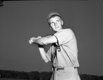 Baseball amateur Benny McClure, third baseman for the Texas Motors team, at bat.