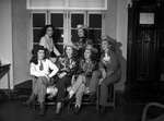 Guest sponsors for the Madison Square Garden Show are leaving Tuesday for New York City, New York. Preparing for their trip, left to right, on the first row are Ann Tobin Riley, Eva Wilken, Jo Ramsey, and Patsy Rogers. On the back row are Mrs. Fay Kirkwood and Lillian Cowan. Mrs. Kirkwood is the chaperon of the group. The women are all dressed in western gear - cowgirl boots, cowgirl hats, western blouses, and trousers.