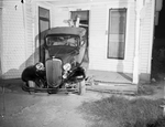 Wrecked car owned by Edgar McCain after it crashed into a house at 410 North Hampton Street, Fort Worth, Texas.