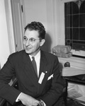 Reverend Harry Sarles, associate pastor of the City Temple, Dallas, Texas, was elected moderator of the Snyod of Texas, Presbyterian Church, U.S.A. He succeeds Reverend F. B. Surface of Abilene. Reverend Sarles is seated with hands clasp in front of him, and looking to his right. Published in the Fort Worth Star-Telegram morning edition, October 17, 1946.