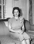 Mrs. Eugene G. Crosier, who has been active in the Tarrant County Baptist Women's Missionary Union since moving here form Texarkana three years ago, was elected president of the organization at its annual meeting in Handley. She will resign her position as secretary of the Riverside Baptist Church, where her husband is assistant pastor, in order to devote all her time to the new job. She will preside at the next workers' conference of the county union. The past year she has been serving as chairman of the community mission committee. She is sitting on a chair with hands folded. Published in the Fort Worth Star-Telegram evening edition, October 18, 1946.