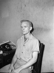 Charles E. Roach is a former aviation machinist's mate 2nd class, is going to "get the works". "The works" will be given Roach when he attends the ceremonies formally activating Fort Worth's peacetime Navy Reserve Battalion at Fort Worth Boat Club. The activation program is part of the observance of Navy Day in Fort Worth. To Roach getting "the works" will mean the receipt of the Distinguished Flying Cross, Air Medal, Gold Star in lieu of the second and third air medals and four citations the nature of which has not been disclosed tot he 23 year-old former PB4Y crewman. Roach already has the Presidential Unit Citation given his Navy Air Corps outfit, VB-104, and can wear the American Theater and Asiatic Pacific Theater ribbons. During his 43 months in the service Roach saw action in the battles at New Georgia, Bougainville, Bismarck Archiepelago, the Gilberts and Corolines. Roach and his wife and their nine-month-old son, Robert Earl, live at 1-16 Barclay. Roach is in training as a butcher at the Lovelace Grocery. His mother, Mrs. C. W. Roach, lives at 1514 Lee. He is a North Side High School graduate. In this picture, he is sitting on a chair and pose for a picture. Published in the Fort Worth Star-Telegram morning edition, October 24, 1946.