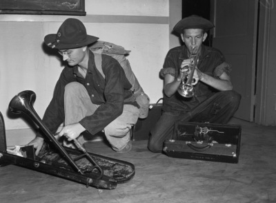 National Guard; Daughterty, C. G. (Pvt.); Trombones; Trumpets; Brass Instruments; National Guardsmen; Military personnel; Bands