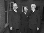 Bishop A. Frank Smith of Houston, left, is shown as he was greeted by Reverend Warren Johnston, pastor of the First Methodist Church and host to the 81st session of the Central Texas Methodist Conference in session, and Reverend W. W. Ward, Fort Worth district superintendent. They are standing next to each other and pose for a picture. Published in the Fort Worth Star-Telegram evening edition, October 29, 1946.