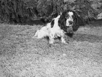 "Mitzi," cocker spaniel pup belonging to Miss Donna Kathleen Zeck seemed to sense that something was wrong as she nervously darts about, looking for her owner. Miss Zeck was injured fatally when struck by an automobile. Published in the Fort Worth Star-Telegram morning edition, October 31, 1946.