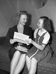 Mrs. Clifford F. Malley and her daughter, Loretta Fay Malley, recently received orders authorizing their trip to Heidelberg, Germany. They will join Master Sergeant Malley, who is stationed in Germany with the 3rd Army. Mrs. Malley is dressed in a blouse, blazer, and a matching skirt. Loretta Fay is wearing a blouse and a pinafore dress. The mother and daughter are sitting on a couch as they happily read the letter. Published in the Fort Worth Star-Telegram evening edition, November 1, 1946.