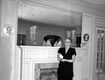 Pictured here is Mrs. R. E. Cox, president of Woman's Club. Her hobbies include talking to people and collecting figurines and small pieces of decorative china, porcelain and bisque. She is the former Bertha Head of Holly Springs, Arkansas. She moved to Fort Worth, Texas as a young girl with her brother and became a Texan when she married her husband, of Stephenville, Texas. She has three children and six grandchildren. In addition to the Woman's Club, Mrs. Cox is an active member of the Mary Isham Keith Chapter, Daughters of the American Revolution (DAR), and the First Methodist Church. She is shown standing in front of her fireplace holding a piece from her china collection. Several figurines are on display on the mantle. Mrs. Cox is wearing a dark dress and a pearl necklace and earrings. Published in the Fort Worth Star-Telegram morning edition, November 25, 1946.