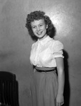Miss Annella Wray Hunter recently married Mr. Burney Mac Hamil Junior at the Polytechnic Methodist Church chapel. Reverend Hubert C. Smith performed the ceremony. The couple will make their home in Fort Worth, Texas. Both are graduates of Polytechnic High School. Mr. Hamil served in the United States Navy for three years. Mrs. Hamil is shown standing against a wall. She is dressed in a ruffled blouse and a skirt. Published in the Fort Worth Star-Telegram, November 10, 1946.