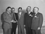 United States Army 91st Infantry Division reunion attendees (left to right) E. C. Hands, Fort Worth, Texas; Roy T. Kilne, Fort Worth, Texas; John W. Wallace, Fort Worth, Texas; Richard R. Law, Oklahoma City, Oklahoma and Marvin H. Watts, Tulsa, Oklahoma.