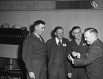 United States Army 90th Infantry Division reunion attendees (left to right) Major General James A. Van Fleet, Texas Governor-elect Beauford H. Jester, Major General H. L. Earnest and M. H. Watts of Tulsa, Oklahoma.