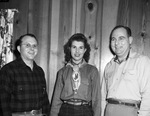 The Safeway Employees Association of the Fort Worth district is holding their annual banquet and dinner dance at the Glen Garden Country Club. New officers installed at the banquet, left to right, are Alton Puddy, Miss Ella Muzny and Herbert C. Potter, all of Fort Worth, Texas. Mr. Puddy, vice president, is wearing a plaid button-up shirt and trousers. Miss Muzny, secretary, is dressed in a plaid blouse, bandanna, and jeans. Mr. Potter, president, is wearing a western shirt and trouser. Published in the Fort Worth Star-Telegram evening edition, November 14, 1946.