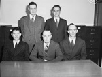 Stanolind petroleum engineers (front row, left to right) Ralph Gray, Hobbs, New Mexico; F. V. Cooksey, Andrews, Texas; R. C. Pusey, Iraan, Texas; (back row) C. L. Kelley, Odessa, Texas and W. D. Powers, Wink, Texas.