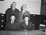 Stanlind Petroleum engineers (front row) Carl B. Mueller, J. B. Jenkins, (back row) L. E. Elkins, Tulsa, Oklahoma, and L. F. Peterson, Fort Worth, Texas.