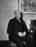 Walter C. Gran is a dramatic reader from Minneapolis, Minnesota. Mr. Gran lost his sight at 17 years old. For 25 years he has been cutting plays, memorizing his versions, and presenting them to an audience. He attended Jamestown College in North Dakota, where he presented Harold Bell Wright's "The Shepherd of the Hills." For the last three years, Mr. Gran has been giving his dramatic reading of Lloyd C. Douglas' "The Robe." He is shown sitting in a chair, dressed in a double-breasted suit.