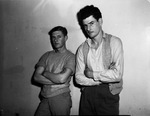 Robbers, William H. Van Dyke and Henry N. Ayers. In the picture both men are standing in front of a plain wall with their arms folded. One of them is wearing a button up shirt with a waistcoat and pants while the other is wearing a knitted shirt with a vest and pants. Published in the Fort Worth Star-Telegram.