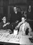 Hippo Party on "Bluebonnet Belle' day at the Forest Park Zoo, Fort Worth, Texas. Cecil Howard (left) takes a hot dog from W. J. Wagner, boys' work chairman of the Optimists. Another boy is eating a hot dog. Bluebonnet Belle is a baby hippopotamus who arrived here from Memphis, Tennessee. Published in the Fort Worth Star-Telegram morning edition, November 16, 1946.