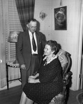Fort Worth city policeman and Mrs. Vivian P. Howell are pictured here. They are married for nearly 30 years. In the picture, Mrs. Howell is smiling while seating on a chair with a floral pattern and net. She is wearing a knee length dress and has her hair tied up in a bun while her husband is wearing a suit and tie and glasses. Mr. Howell places his left hand on the chair. He will retire January 1 after serving more than 25 years. In the background, there is a painting on the wall and a side table with a lamp on it. Published in the Fort Worth Star-Telegram morning edition, November 18, 1946.