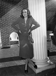 Miss Geraldine Harmon is a debutante from San Antonio, Texas. She made her debut this spring at the Coronation Ball in San Antonio. She is visiting Fort Worth, Texas as the guest of Mr. and Mrs. W. A. Schmid. Miss Harmon will attend the Fort Worth Assembly Ball Friday night with Schmid's son Mr. Mickey Schmid as her escort. Miss Harmon is standing in front of a pillar, hands on her waist. She is wearing a dress and a pearl necklace. Published in the Fort Worth Star-Telegram evening edition, November 22, 1946.